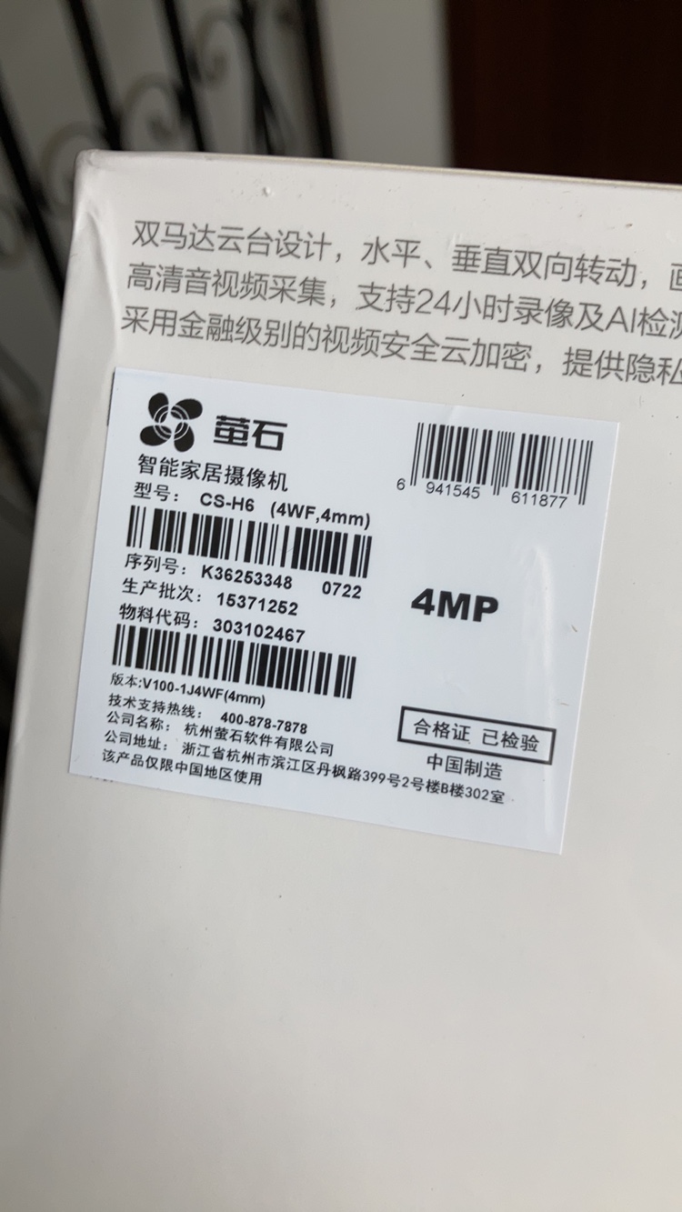 EZVIZ Smart Home Camera H6 Starlight Edition AI Spherical 4MP 2K Dual MIC Pickup CS-C6