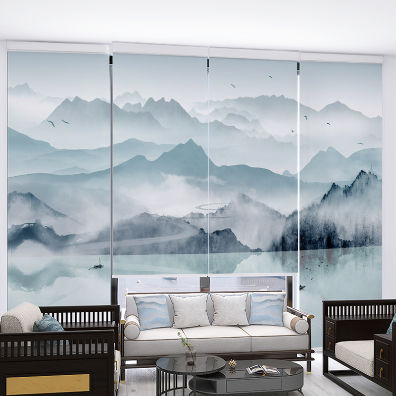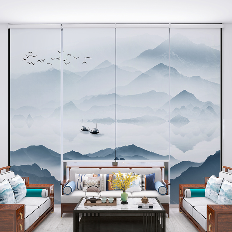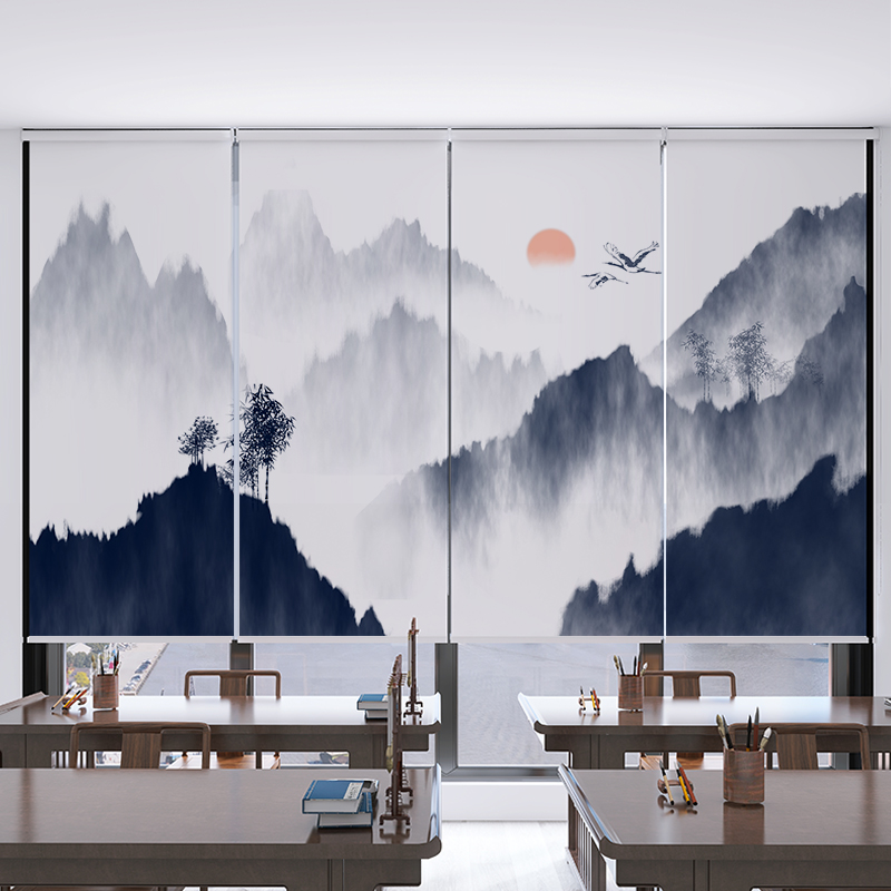 Imefen China Wind Partition Roller Blind Screen Curtain Office Tea Building Decorative Rolls Pull Curtain Shading Free of perforated installation-Taobao
