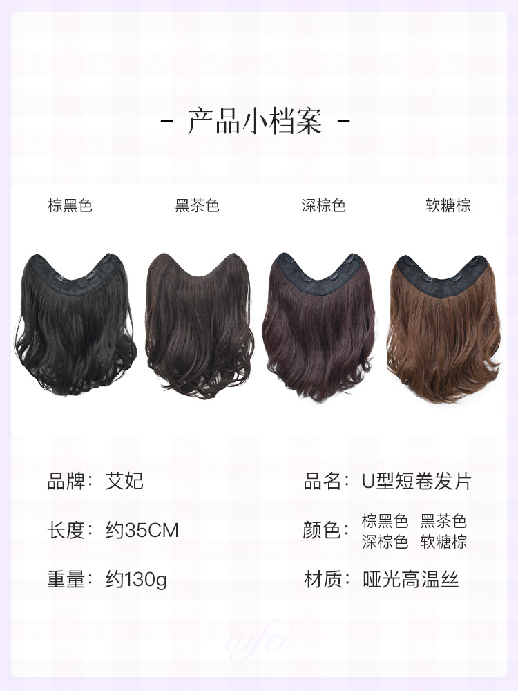 Aifei big wavy short curly hair female wig piece U-shaped one-piece hair extension volume fluffy seamless invisible hair extension patch