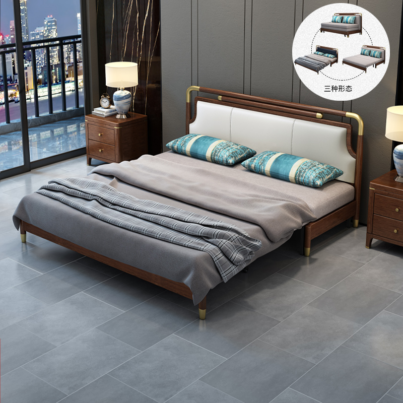 New Chinese-style solid wood folding sofa bed dual-purpose single double small apartment living room walnut sofa multifunctional bed