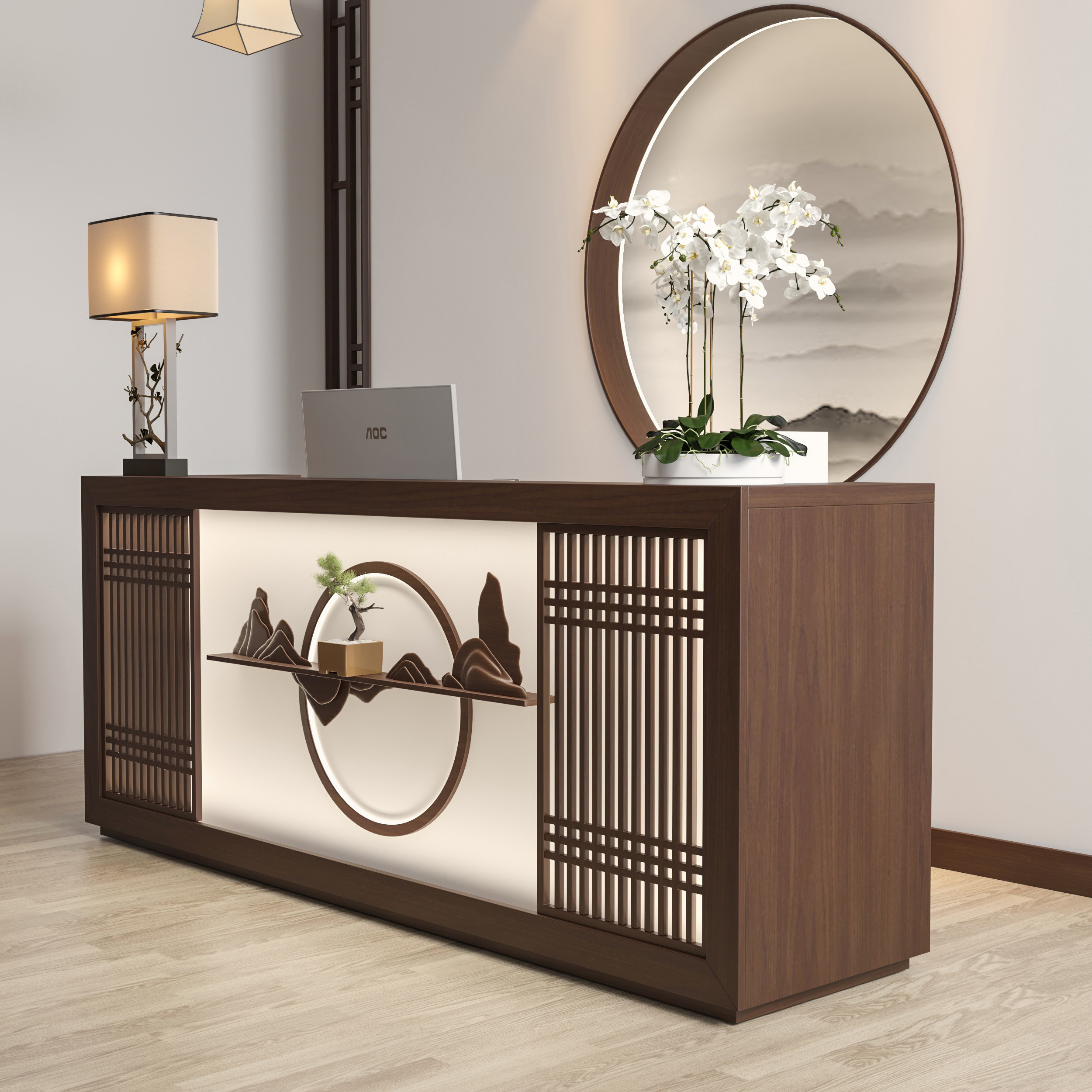 New Chinese cashier counter Teahouse beauty health shop ear shop pedicure retro solid wood bar table dining room reception desk