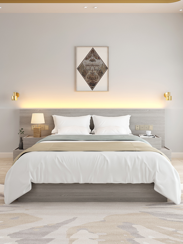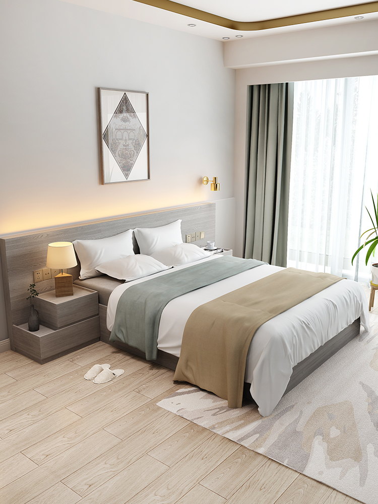 Hotel furniture standard room full set of bed chain custom homestay apartment room express hotel rental room single room double bed