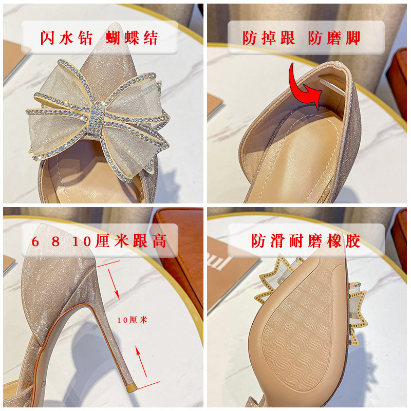 Bow knot high heels feminine temperament divine model French pointed bag shoes stiletto 2021 new bridesmaid wedding shoes main wedding dress