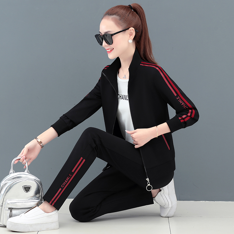 Sports clover suit women's autumn fashion women's straight loose casual foreign style stand collar sweater three coats