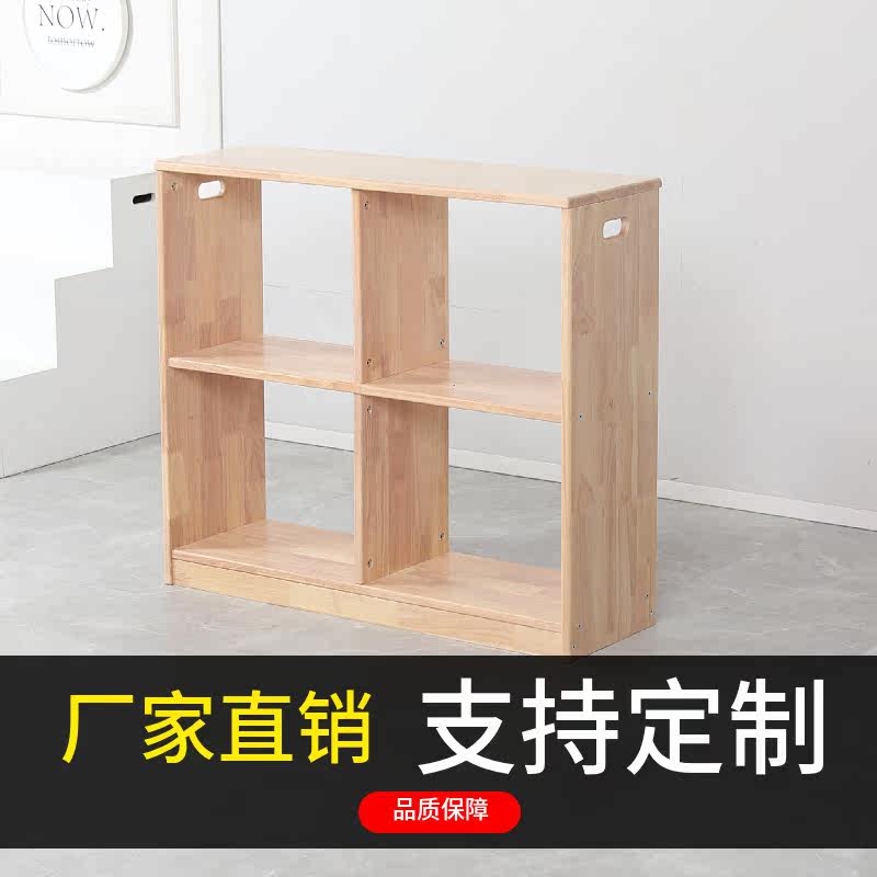 Kindergarten solid wood cabinet children's early education center wooden layered simple item rack double-layer four-grid storage cabinet