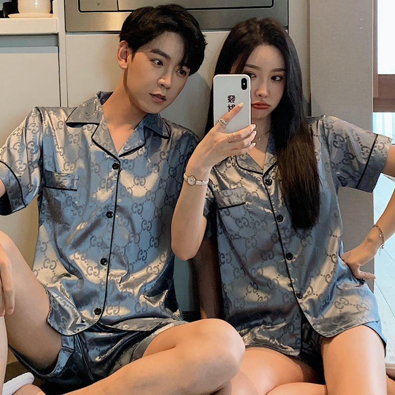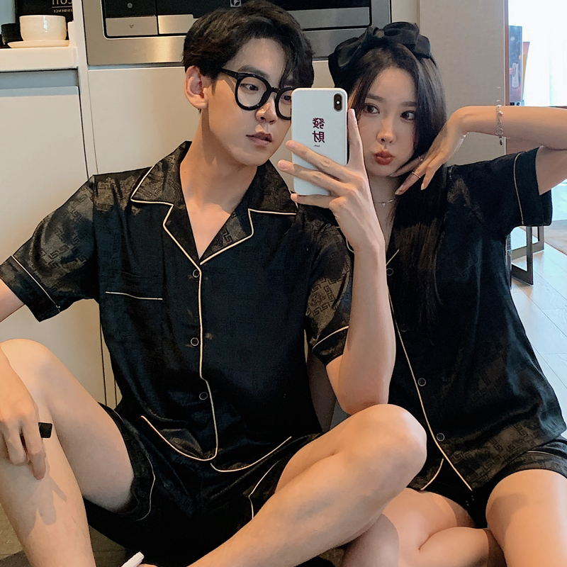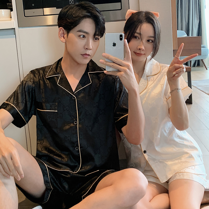 Couple pajamas women's summer short-sleeved ice silk thin section 2021 new men's summer home clothes loose suit