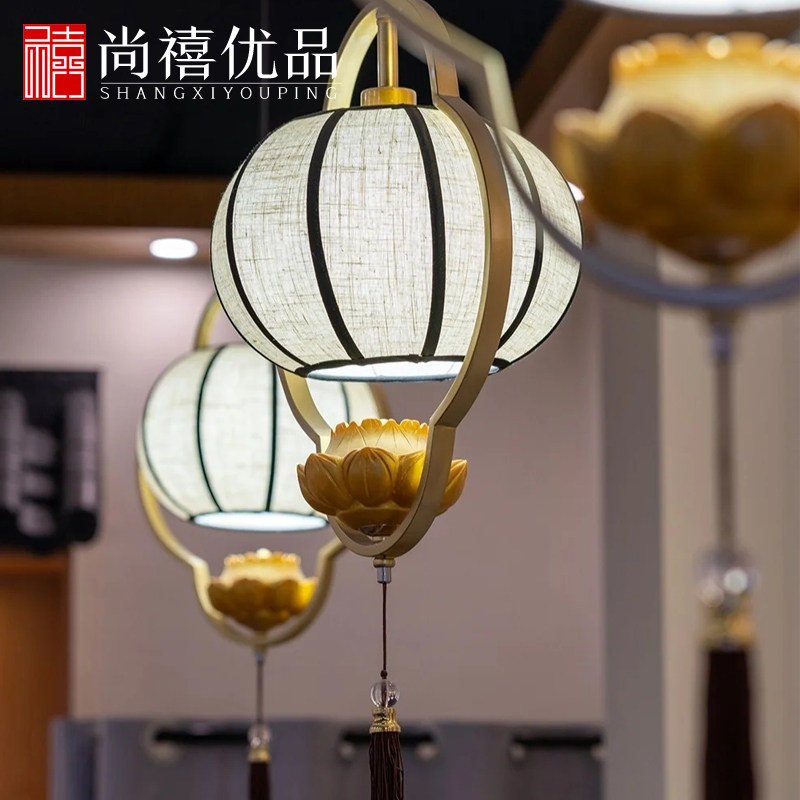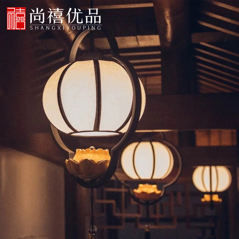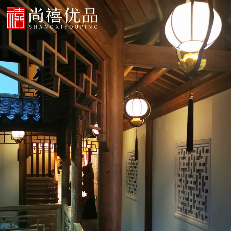 New Chinese barbecue shop lantern balcony non-pair of Chinese antique lantern chandelier antique lotus decorative lamp outdoor