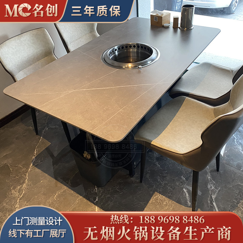 Fire Pot Shop Table And Chairs Marble Hot Pot Table Induction Cookery Integrated Table Barbecue Shop Han Style Roast Table Commercial-Taobao