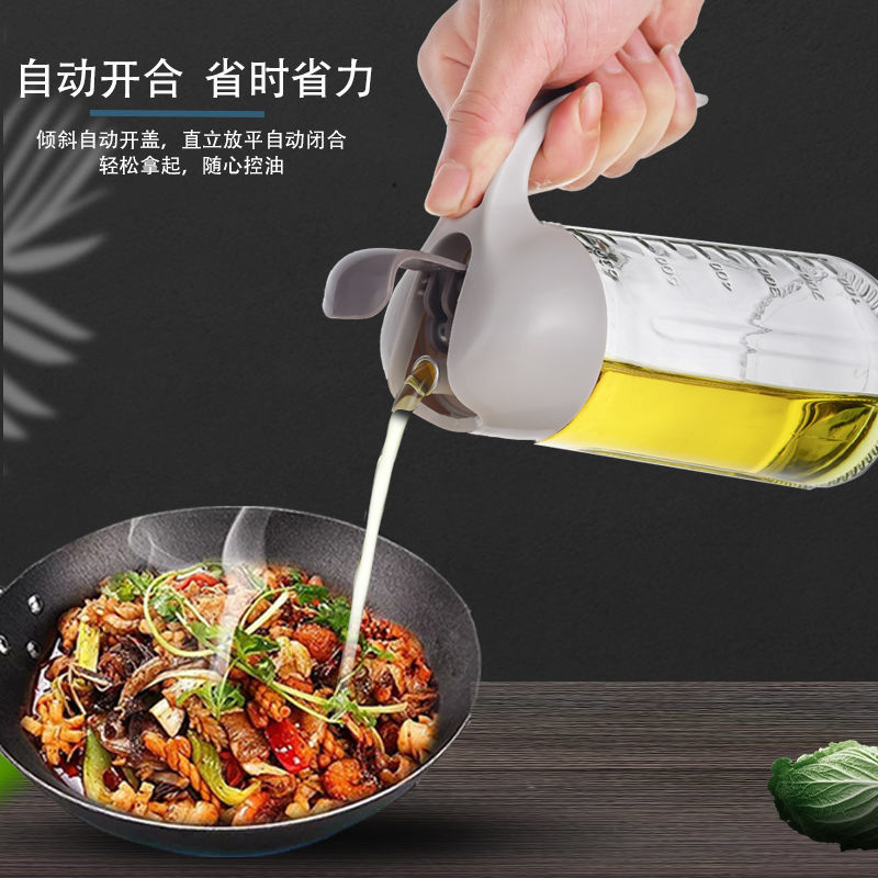 Automatic opening and closing glass oil pot home kitchen with oil pouring oil anti-leak size Number of soy sauce vinegar Vinegar Sauce Bottle