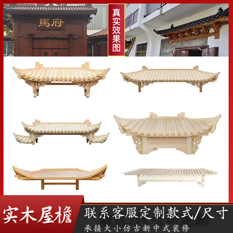 East Yang Wood Carving Imitation Ancient Solid Wood Eatery Door Head Chinese Style Door Building Retro Architecture Flying Eatery Angled Bucket Arch Decoration Custom