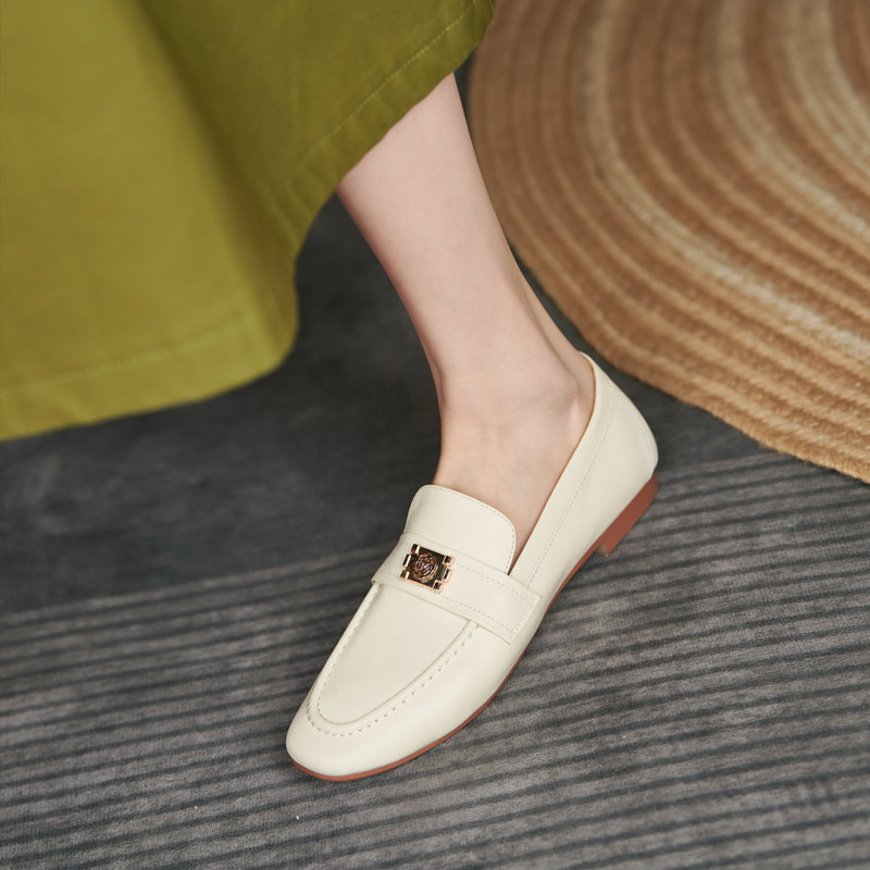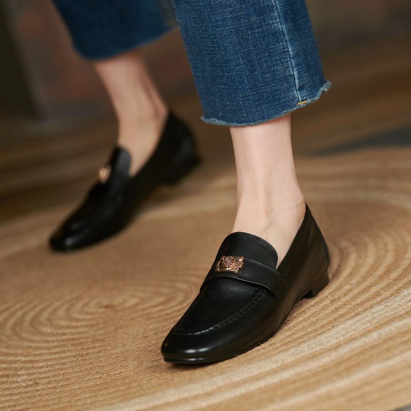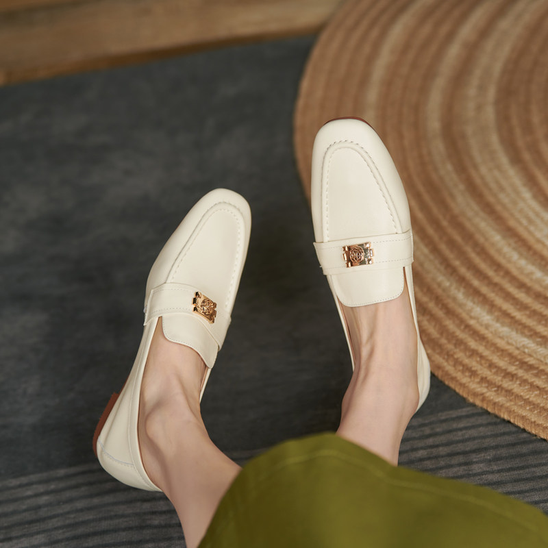 Lefu shoes women's summer French style 100 lap one foot pedal soft leather retro grandma shoes flat bottom genuine leather deep mouth single shoe woman soft bottom