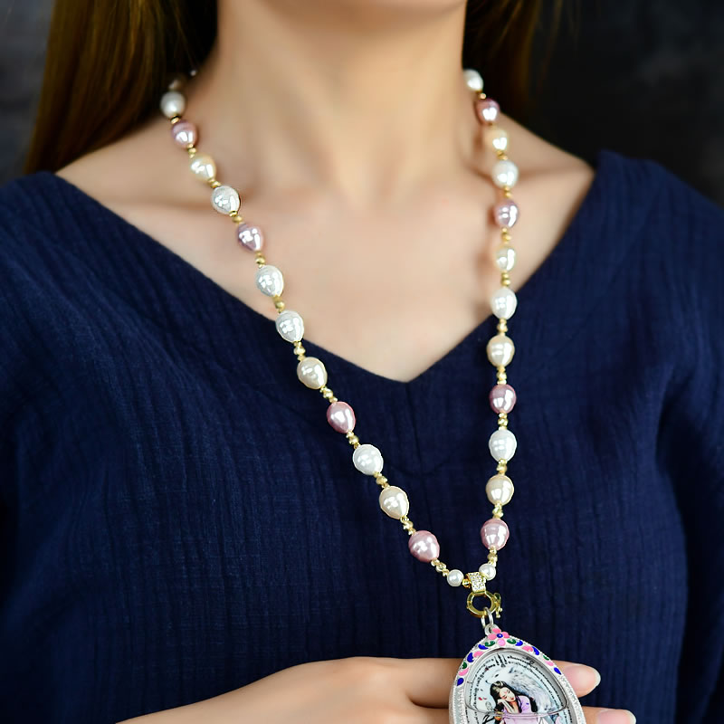 Large Grain Baroque Pearl Necklace Thailand Buddha Licence Hang Chain chain Mighty Clasp Pendant Chain