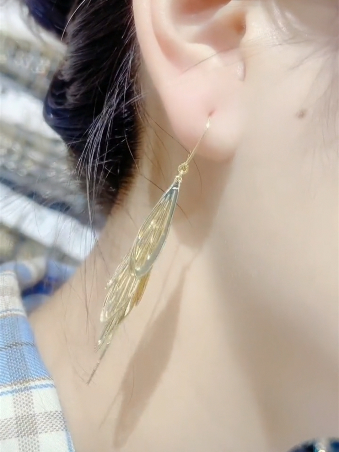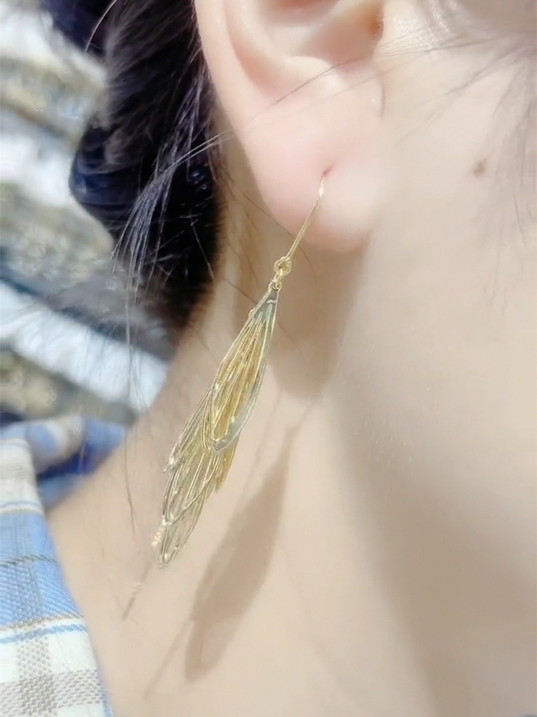 Dragonfly Dot Water Ear Necklace Girl Burst Net Red 100 Hitch Accessories 925 Silver Pin Anti-Allergy Ear Pendant High-end Anti-Lose Design