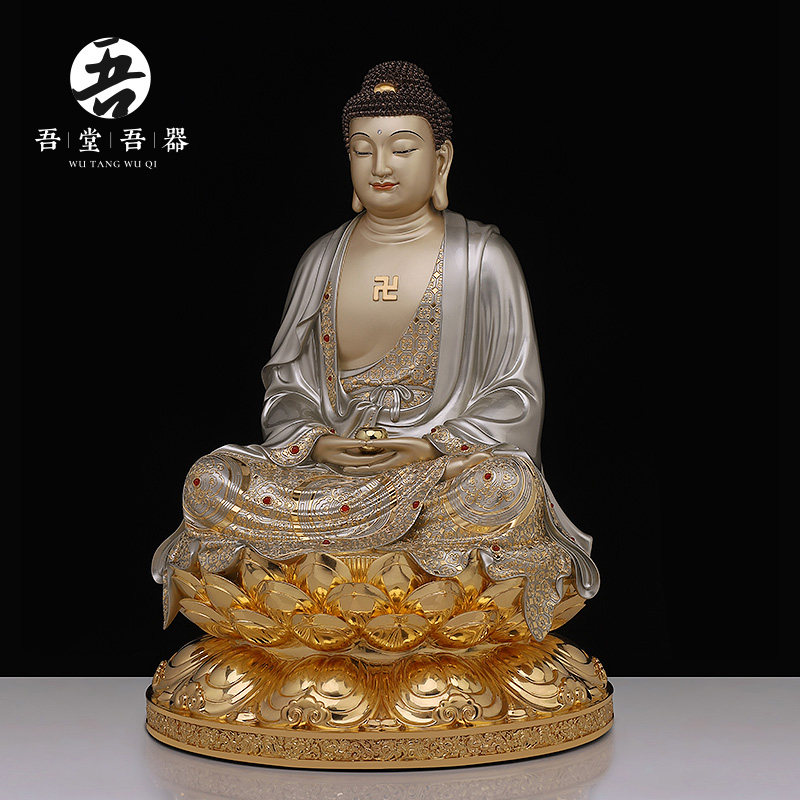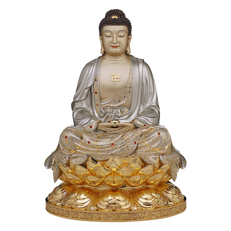 40cm sitting lotus "Three Treasures Buddha" filigree silver color inlaid treasures 48cm sitting lotus "Sambo Buddha" filigree silver color inlaid treasures 60cm sitting lotus "Three Treasures Buddha" filigree silver color inlaid treasures deposit