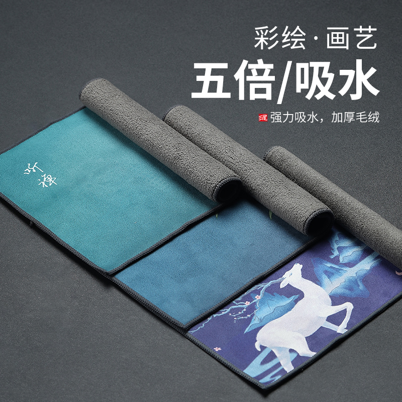 Su Ming high-grade plush cotton absorbent tea towel painted Guofeng Zen trumpet light luxury raising pot special rag tea set accessories