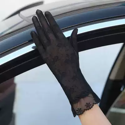 Sunscreen gloves female summer thin long version of anti-UV short spring and autumn ice silk lace driving riding non-slip touch screen