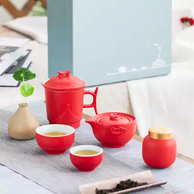 Retro national style Cultural and creative business Palace Kung Fu tea set gift custom logo Financial real Estate souvenir