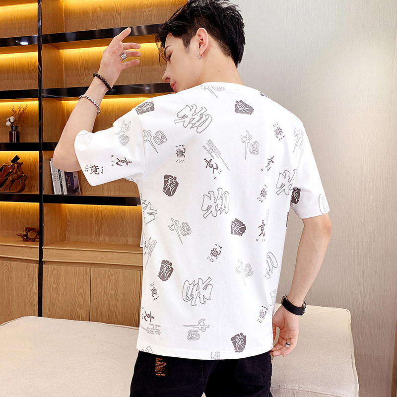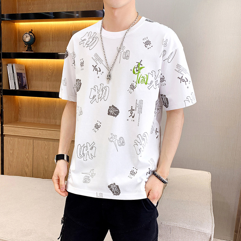 Short Sleeve T-Shirt Male Tide Card Trends 2022 New National Tide Summer Pure Cotton Men's Half Sleeve T-Shirt Clothing Men's Clothing
