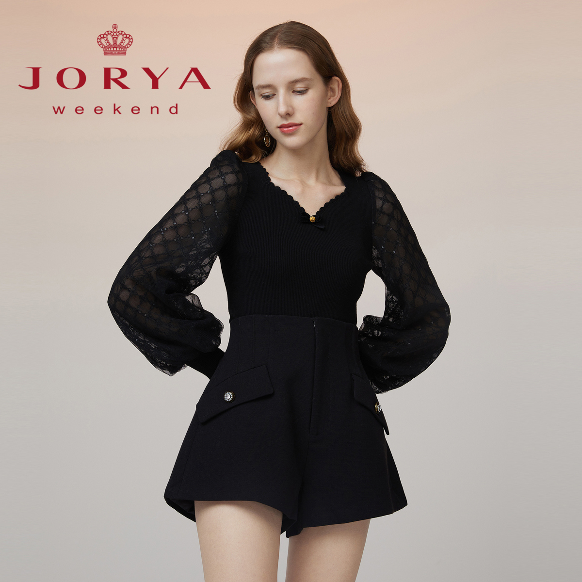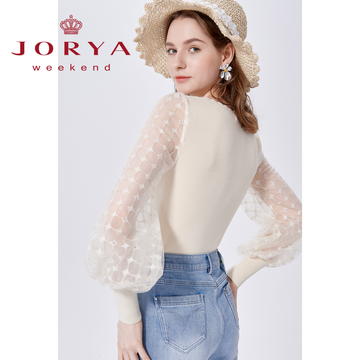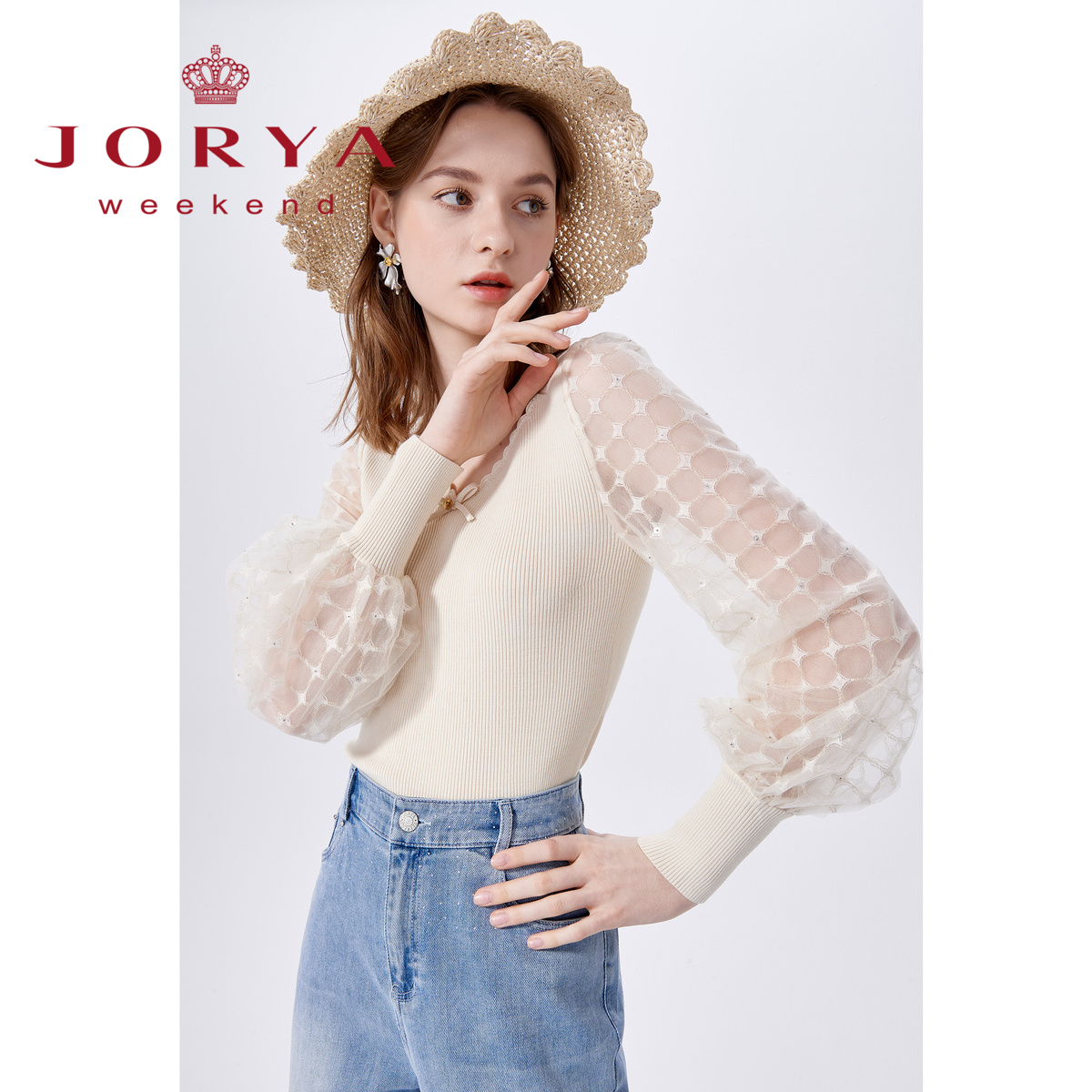 Zhuoja Weekend 2022 Spring new wave edge splicing mesh yarn lantern sleeve sweater-knitted sweater EJWBCR34