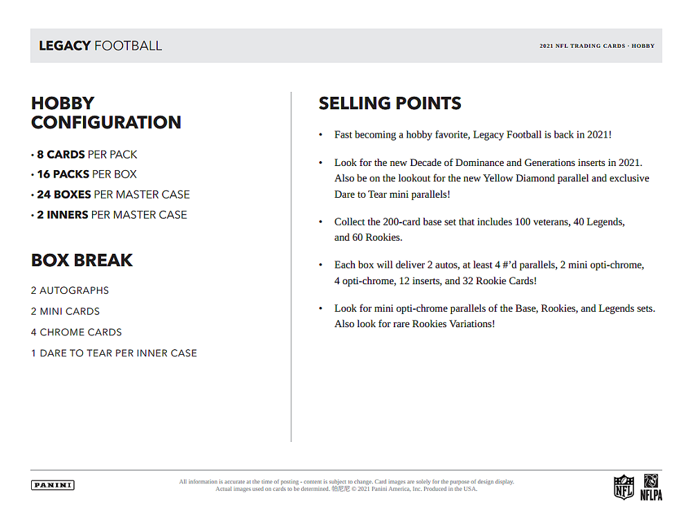 (34ING) Panini 2021 PANINI NFL Legacy hobby Rugby Star Card Box Card