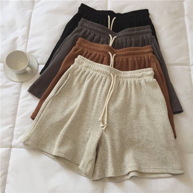 Japan SLY2021 Breathable Waffag Fabric High Waist Display Slim A Character Wide Leg Casual Shorts Hot Pants Summer