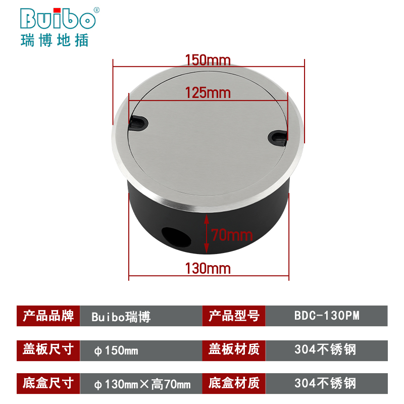 Buibo round cover ground socket 304 stainless steel pure water resistance diameter 150mm outline hidden plug