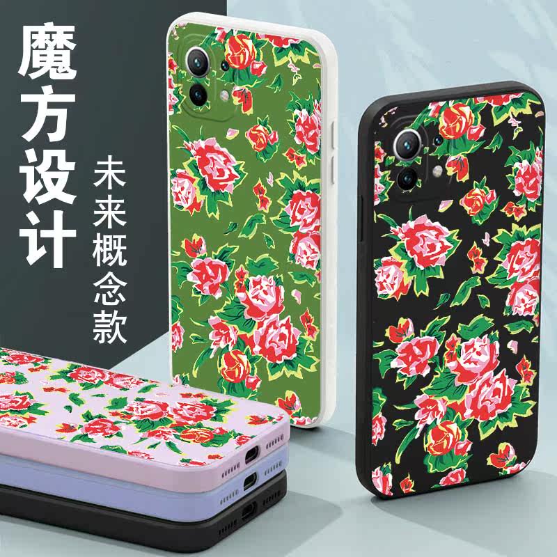 Straight side Cube-Xiaomi 11-dark night green -475 Northeast big flower bouquet straight side magic square-Xiaomi 11-Antique white -475 Northeast big flower cloth straight side magic square-Xiaomi 11-Mountain tea red -