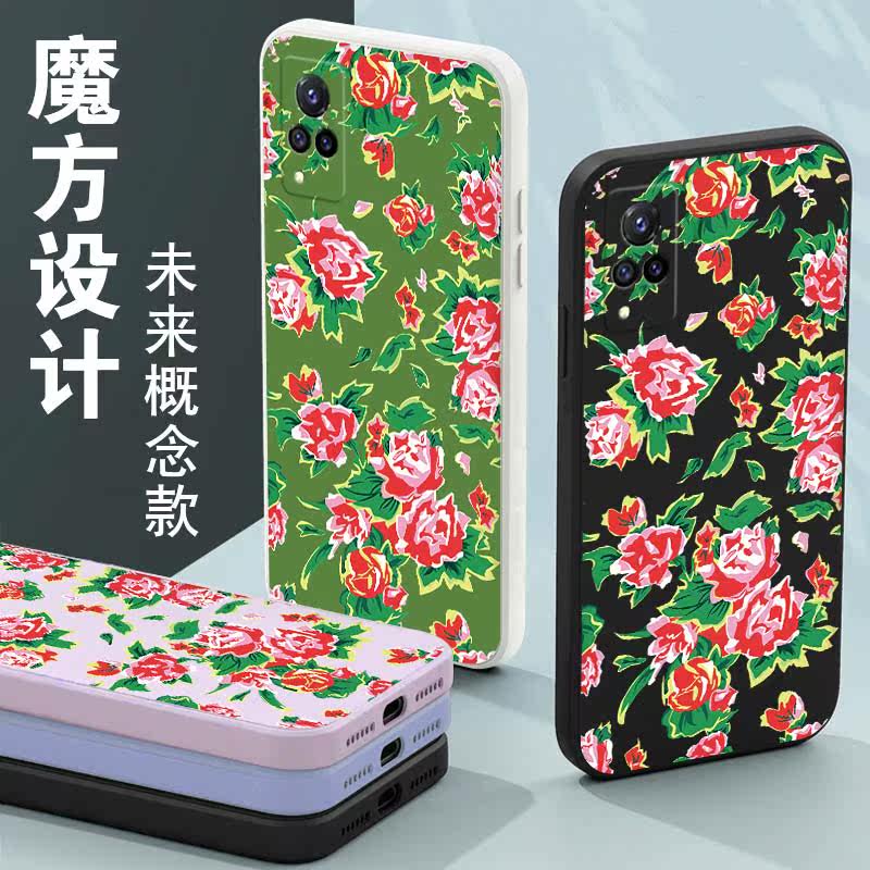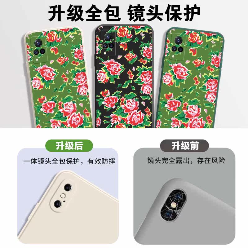 Northeast Large flower bub phone protective shell vivos9 Joe July Tongo Festive Earth Taste Tide s9e Net Red Right Side s9 Magic Square Liquid Silicone Square Lens Full Package Soft Thin Anti-Fall Frosted Cover