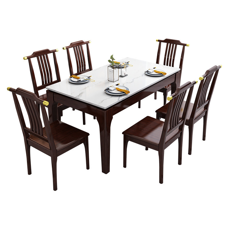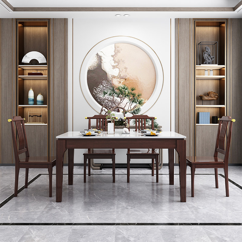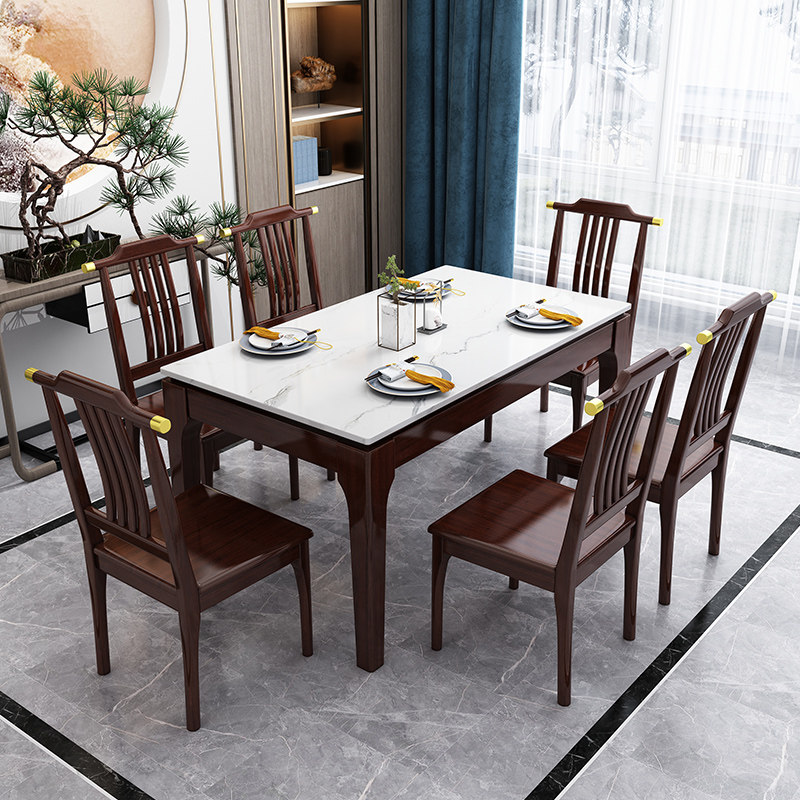 National style new Chinese-style solid wood dining table and chair combination modern minimalist small apartment rectangular 46-person household slate dining table