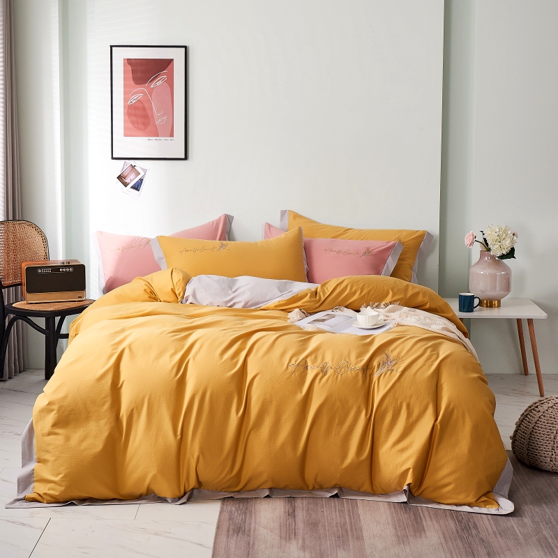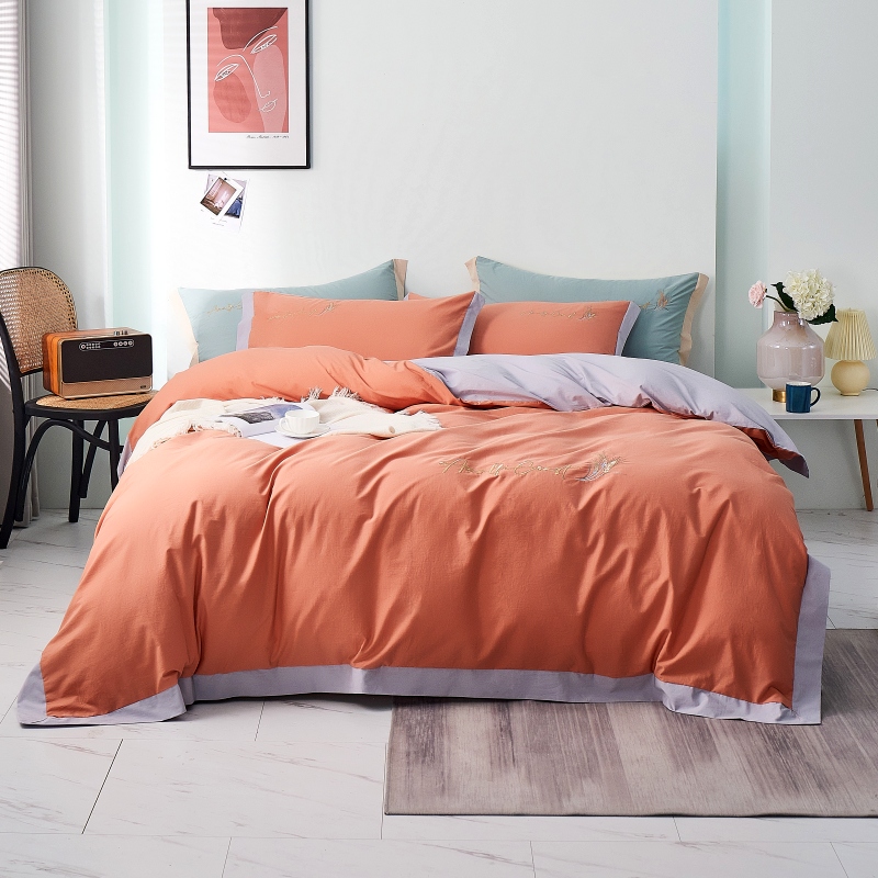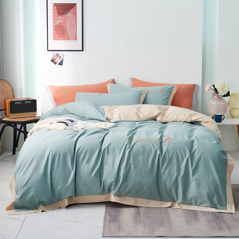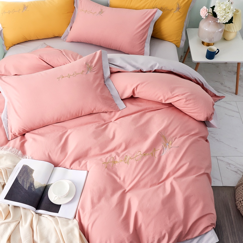 Light Extravagant Embroidered All-cotton Pure Cotton Four-Piece Minimalist Washed Cotton Pure Color Quilt Cover Bed Bedding Princess Wind