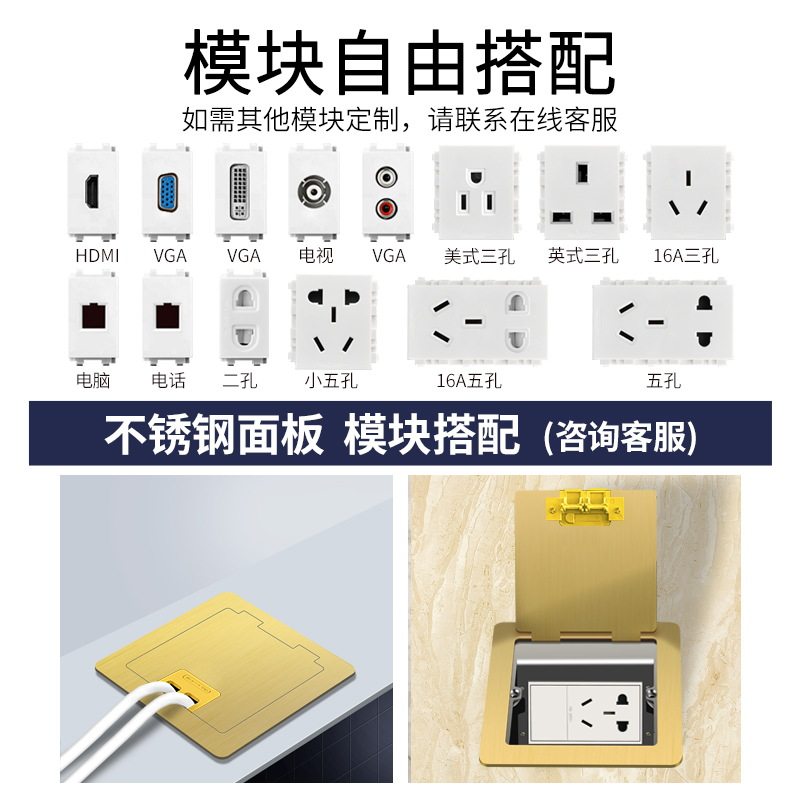 Gold ground socket full copper floor plug hidden waterproof ground socket computer invisible network flat ground plug