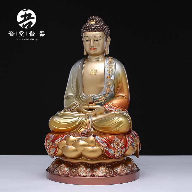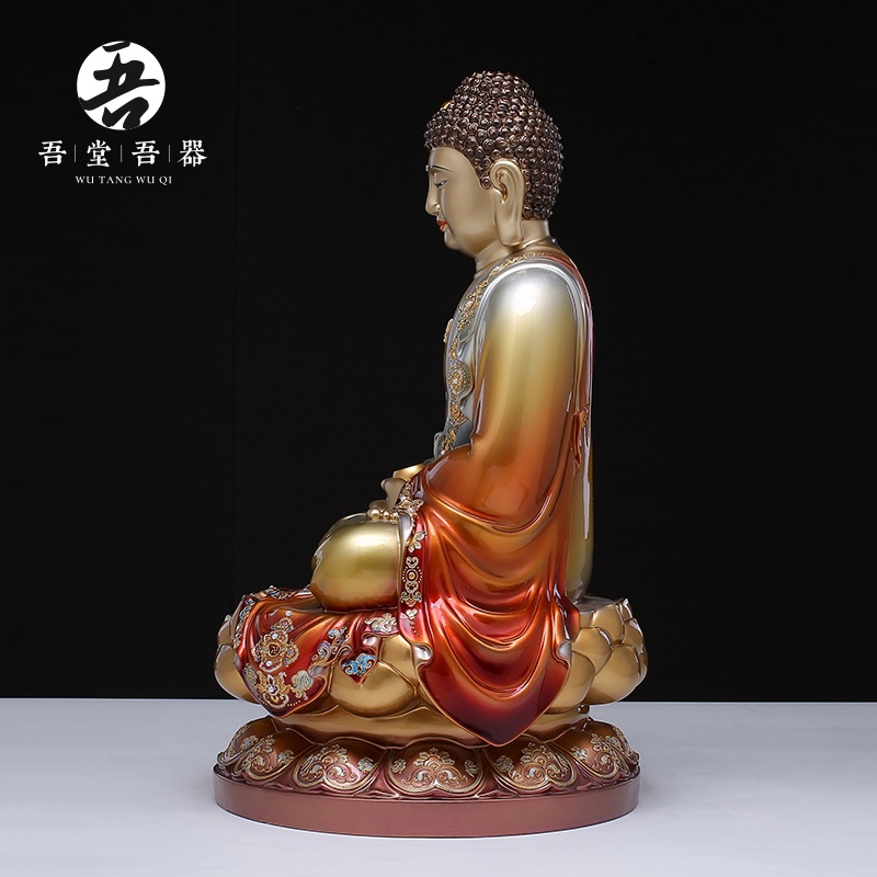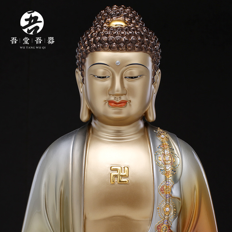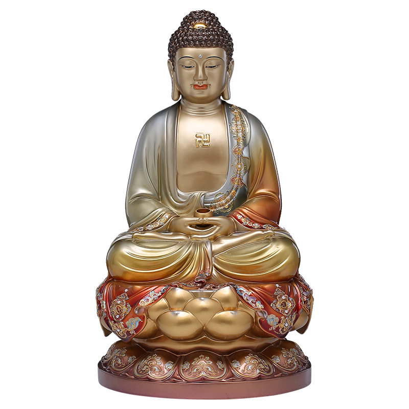 30cm "Three Treasures Buddha" Sakyamuni Buddha - Cloisonne enamel inlaid with gold (cloth edge) 40cm "Three Treasures Buddha" Sakyamuni Buddha - cloisonné enamel inlaid with gold (cloth edge) 48cm