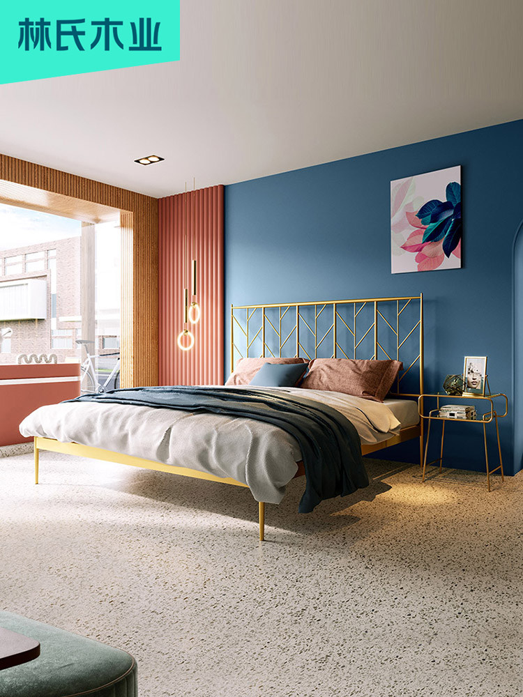 Lin's wood industry modern minimalist double iron bed 1 8 meters iron frame bed 1 5 Nordic ins net red iron bed EO1A