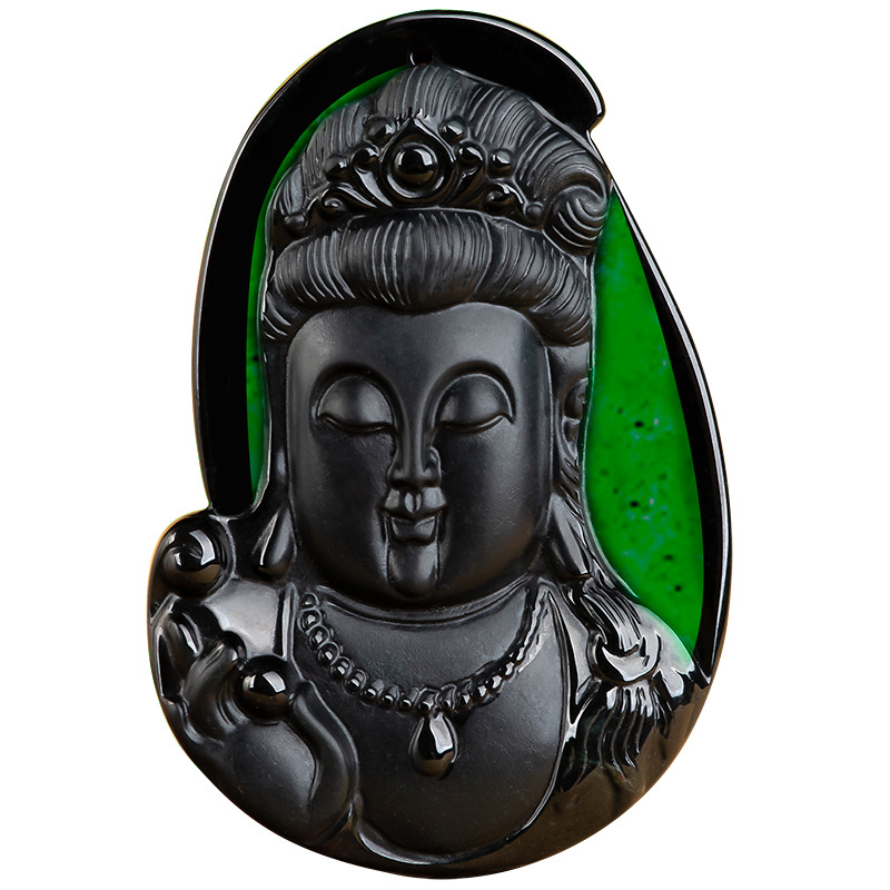 RMBone Auctions of Leaked Natural Ink emerald Guanyin head jade pendant overdraft green men's jade pendant pendant