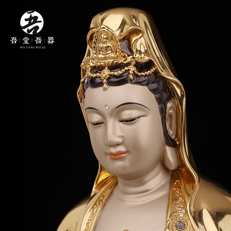 All copper "One Leaf Avalokitesvara" filigree paste gold inlaid treasure Avalokitesvara Bodhisattva Buddha statue statue decoration copper home crafts