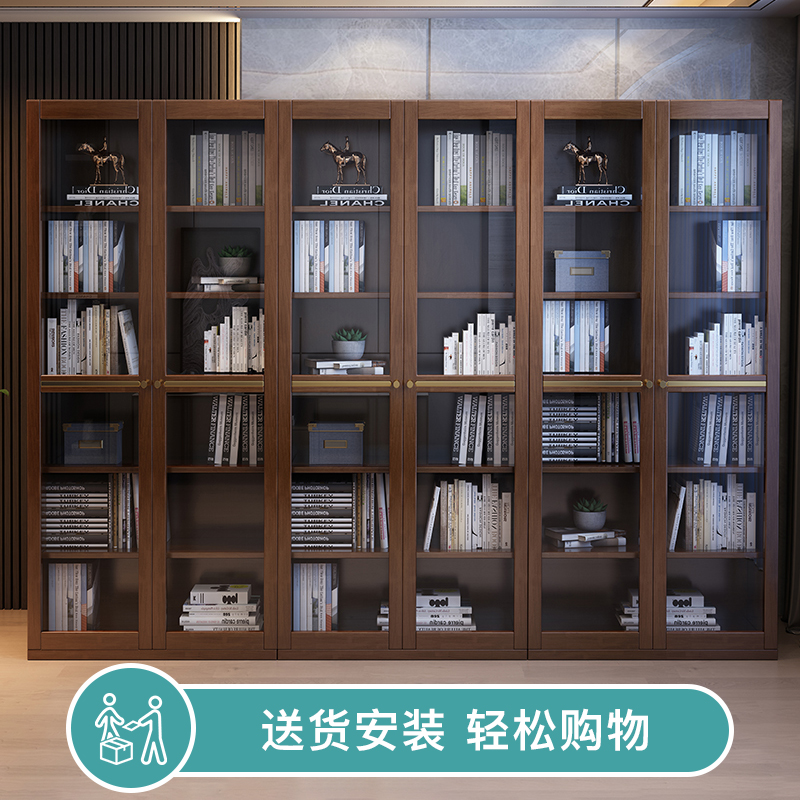 Simple solid wood bookcase glass door light luxury study bookcase office storage display storage cabinet combination file cabinet