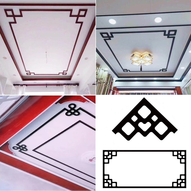 New Chinese ceiling Ceiling Corner Flower Decoration Sticking Living Room Finished Product Diagonal 4 cm Flat Red Wood Grain Black Free Paint-Taobao