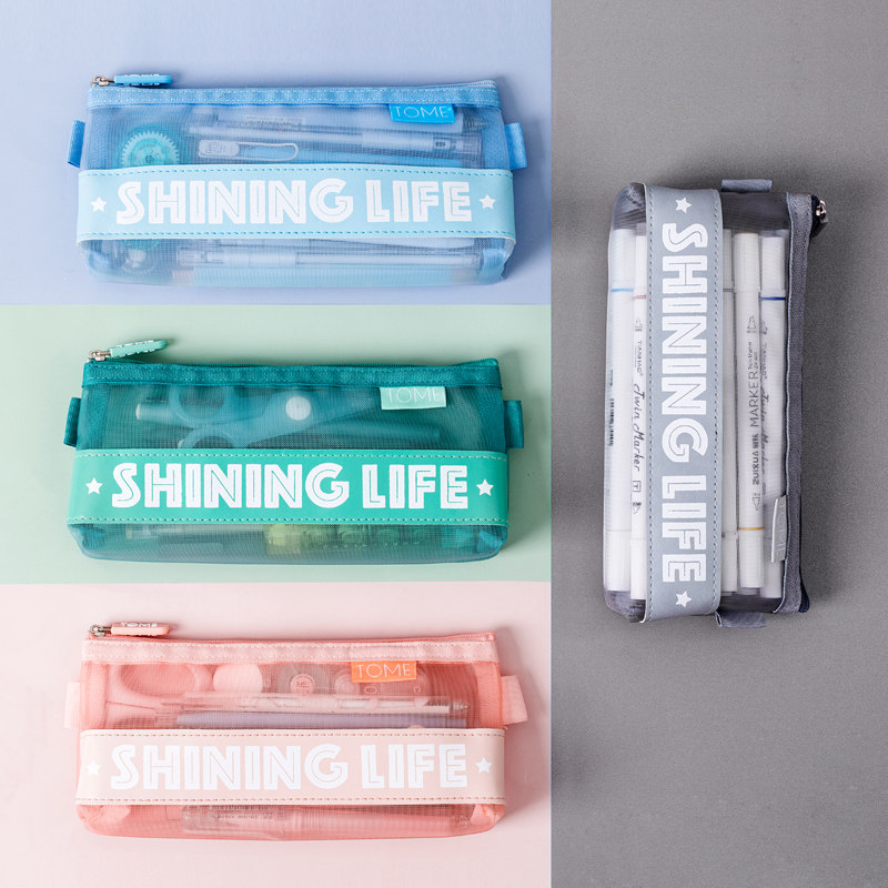 Three years II Bannet yarn transparent pen bag examination Special Chinese examination stationery bag adorable Jean Joins Japanese Department Pencil Bag Net Red Multifunction Elementary School Girl Pencil Case Pencil Case Pencil Case Pencil Case