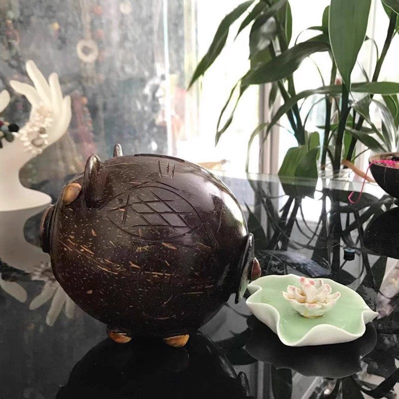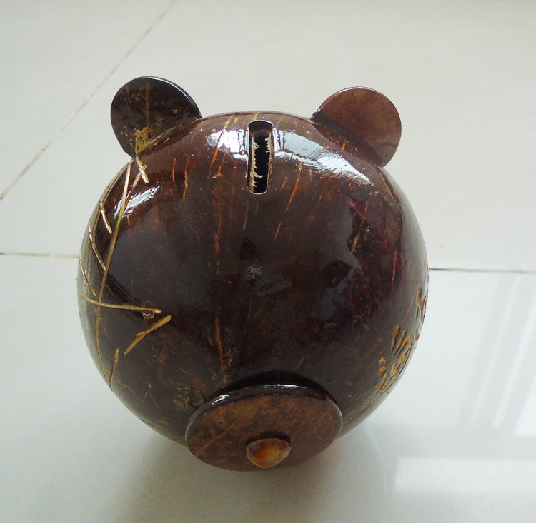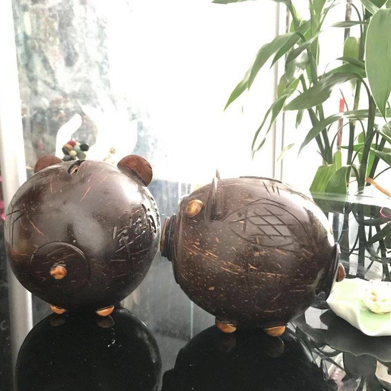 Hainan Featured Coconut Shell Light Pig Zero Money Pot Pure Hand Engraving Children Cute Coconut Shell Savings Pot-Taobao