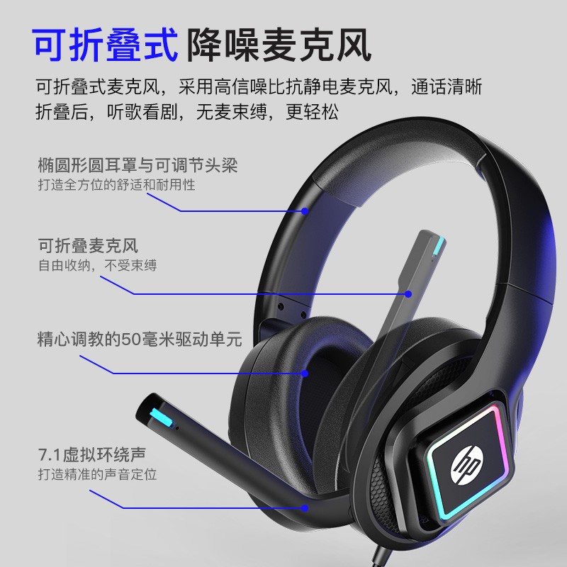HP HP H1G computer headset headset e-sports game eating chicken listening voice defense microphone with microphone Desktop 7 1 channel noise reduction headset USB wired ear mask notebook Universal