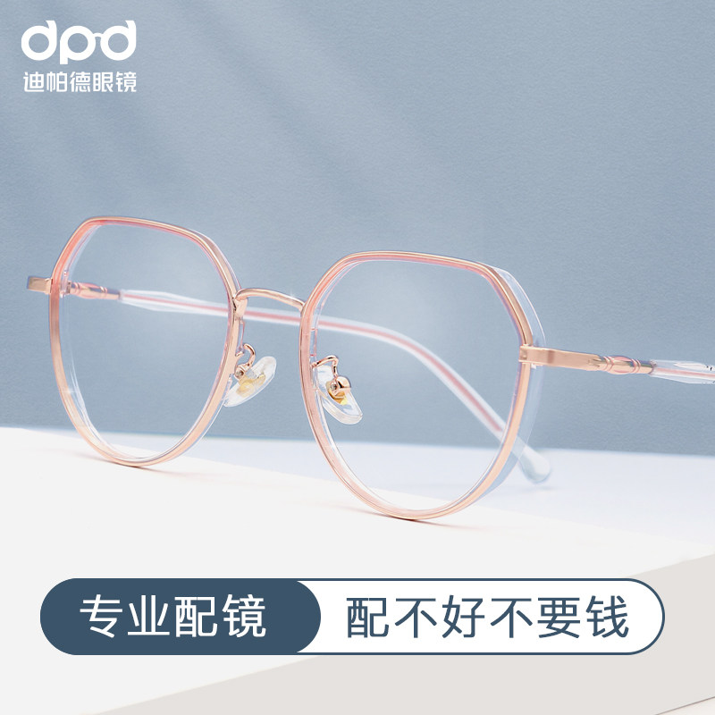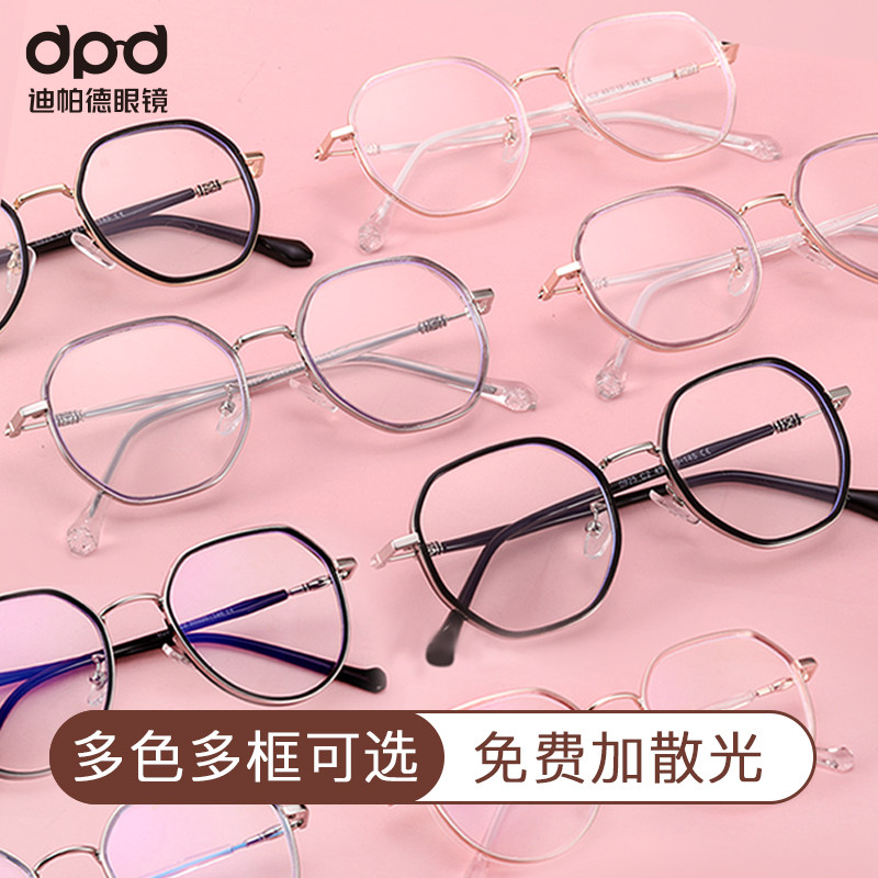 Height number of near view eye mirror female large frame round face Lean Anti Blue Light can fit with astigmatism transparent eye frame