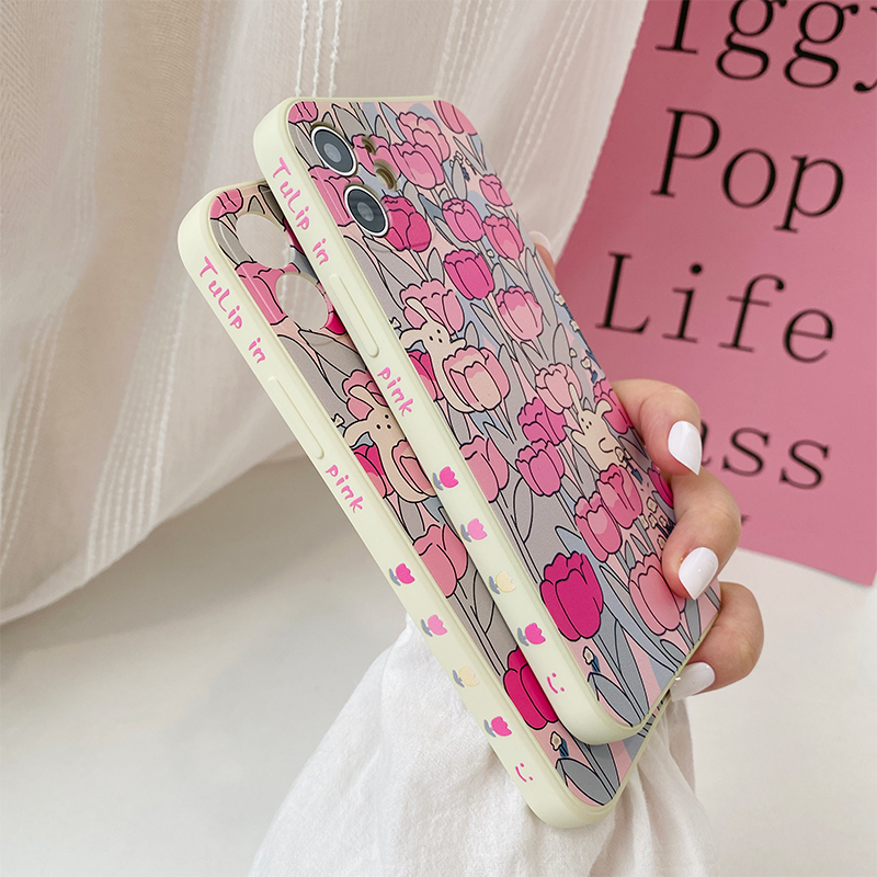 Benefit Pink Tulip Apple 13promax Cell Phone Case Vintage iPhone 12mini Fresh Xsmax Silicone XR Art 8plu