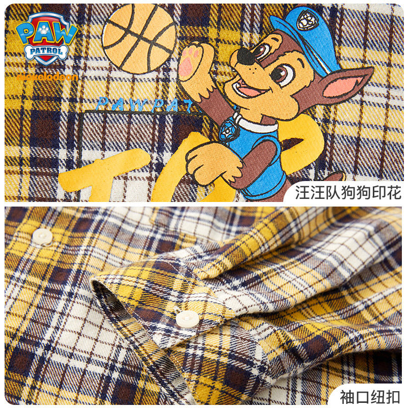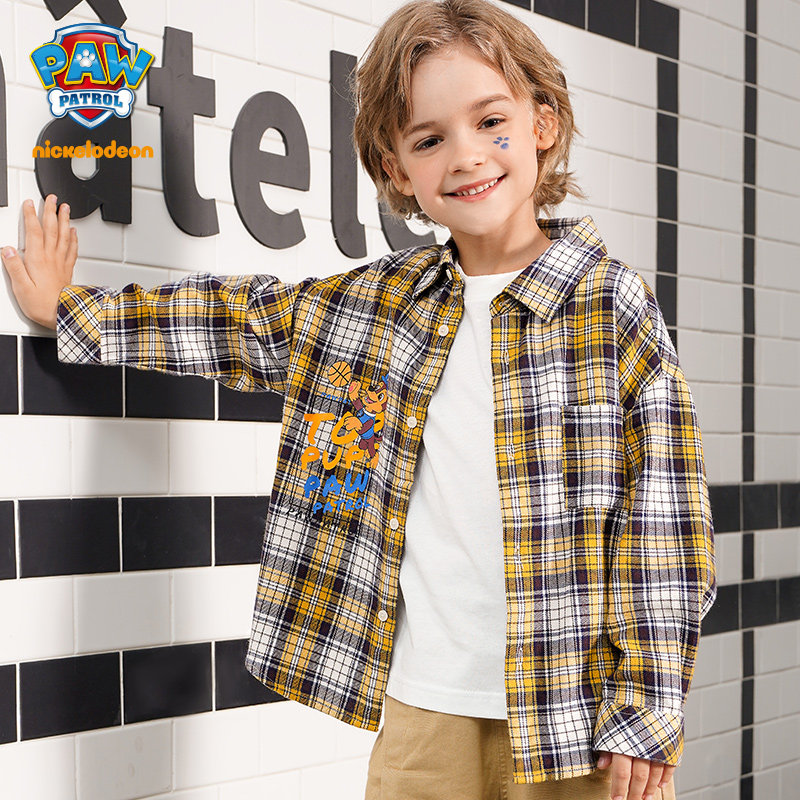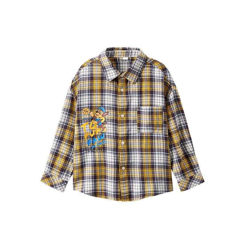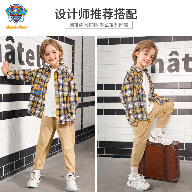 Wang Wang team children long sleeve shirt fashion turned leader checkered shirt autumn new 2-8-year-old boy round collar blouse