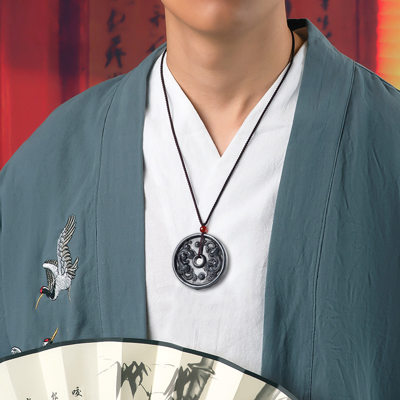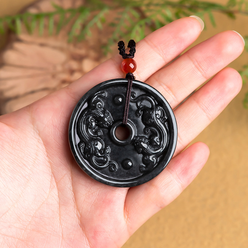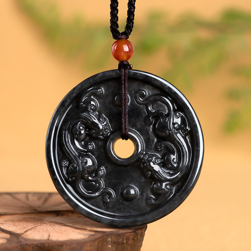 RMBone Auction Myanmar Emerald Uri Bone Chicken Seed Imitation Ancient Double Dragon Safe Button Jade Pendant Male pendants Female Jade Pei