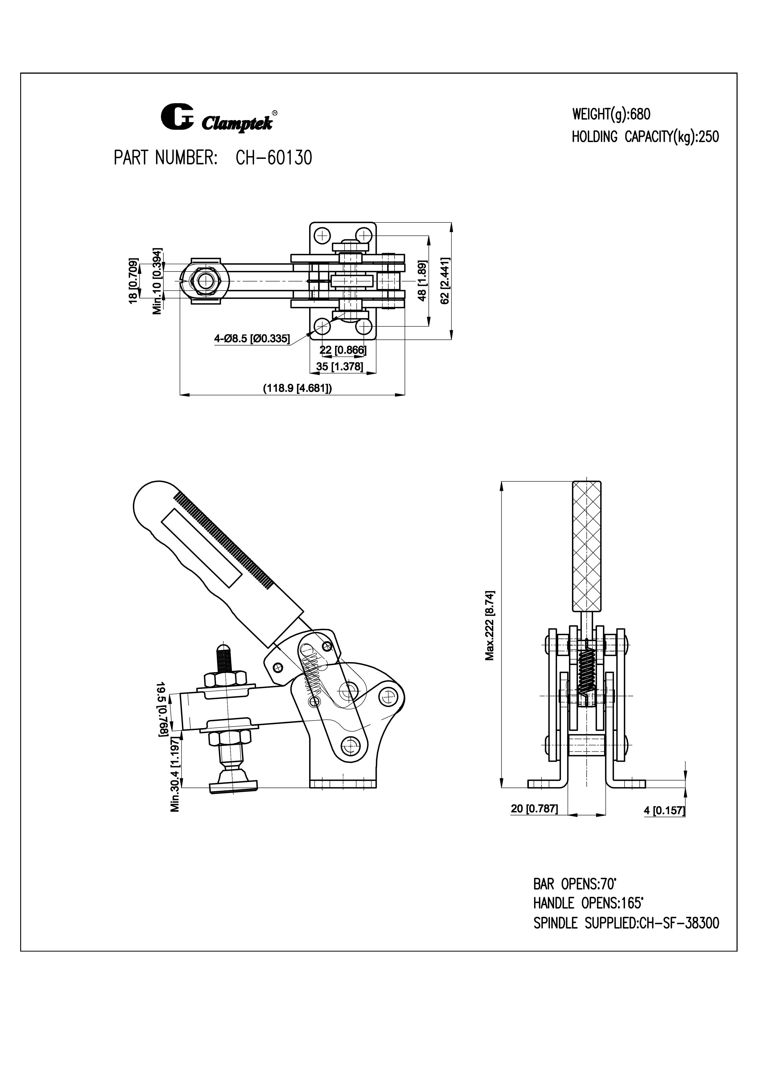 Original Taiwan Jiagang cam-type quick clamp CH-60130 vertical pressing elbow clamp fixture 60131