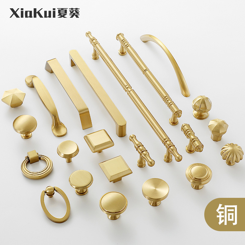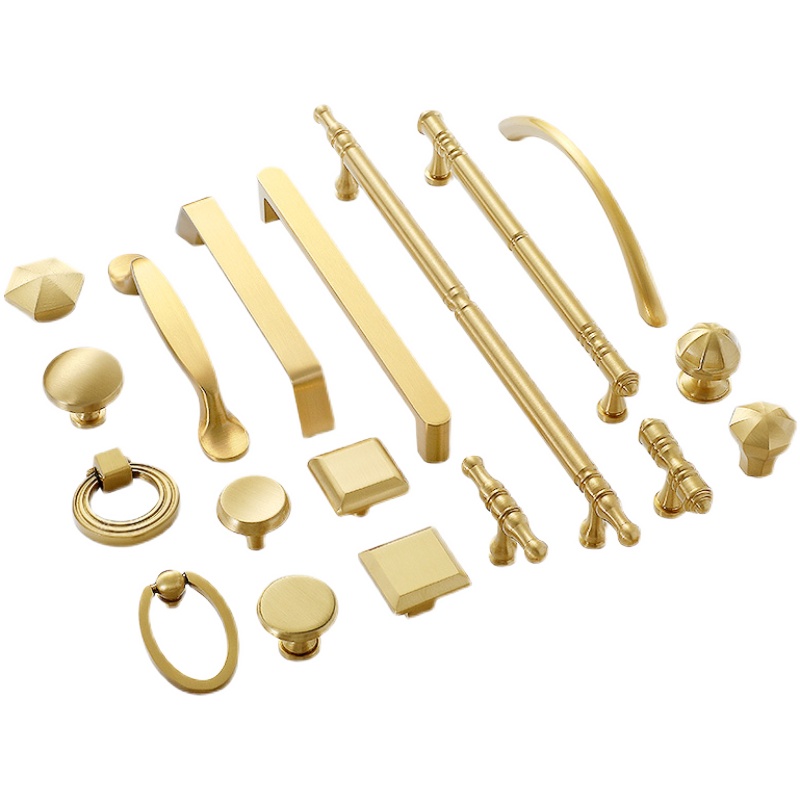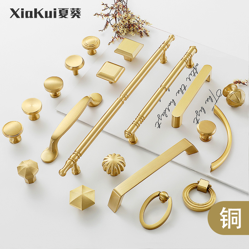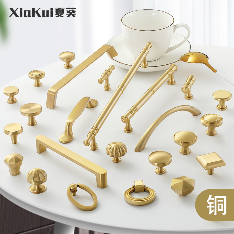 Light extravagant gold pure copper wardrobe handle Nordic minimalist New Chinese brass drawers Single-hole overall cupboard door handle full copper