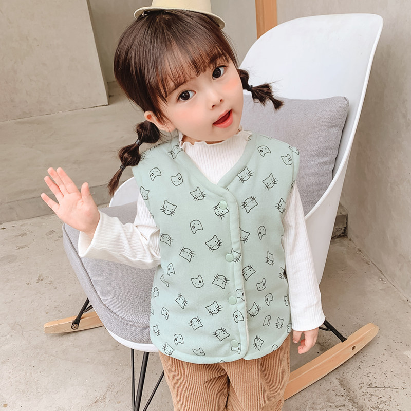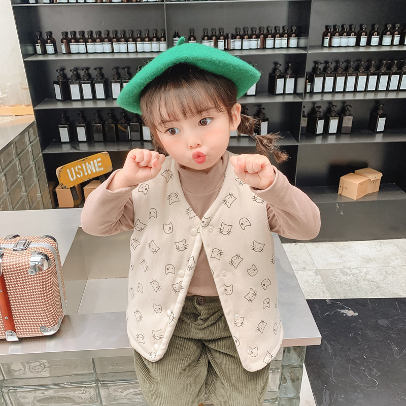 Children's vest vest autumn and winter style boys and girls Western style vest inside and outside wear baby baby cute plus velvet vest