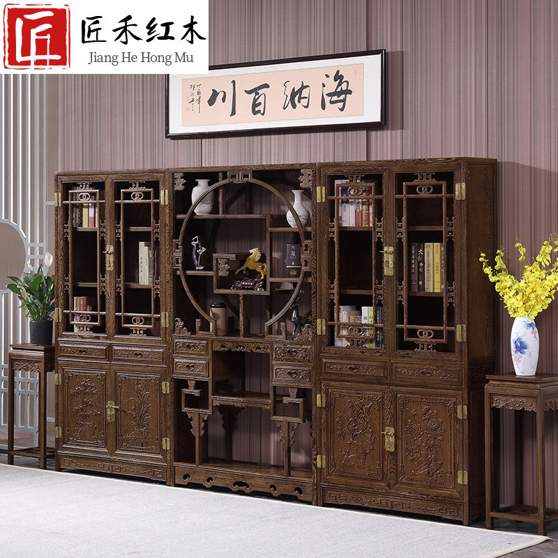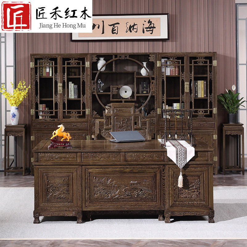 Wenge wood desk desk mahogany solid wood antique furniture Chinese boss desk bookcase Bogu rack executive desk