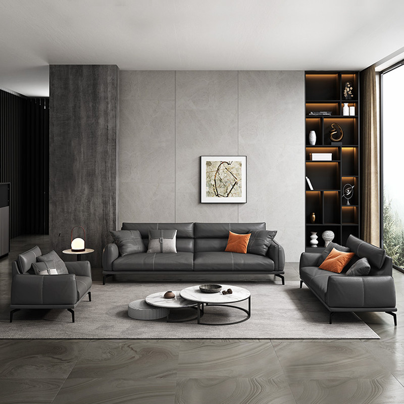 European-style leather sofa office living room business reception simple modern sofa single and double tea table combination set