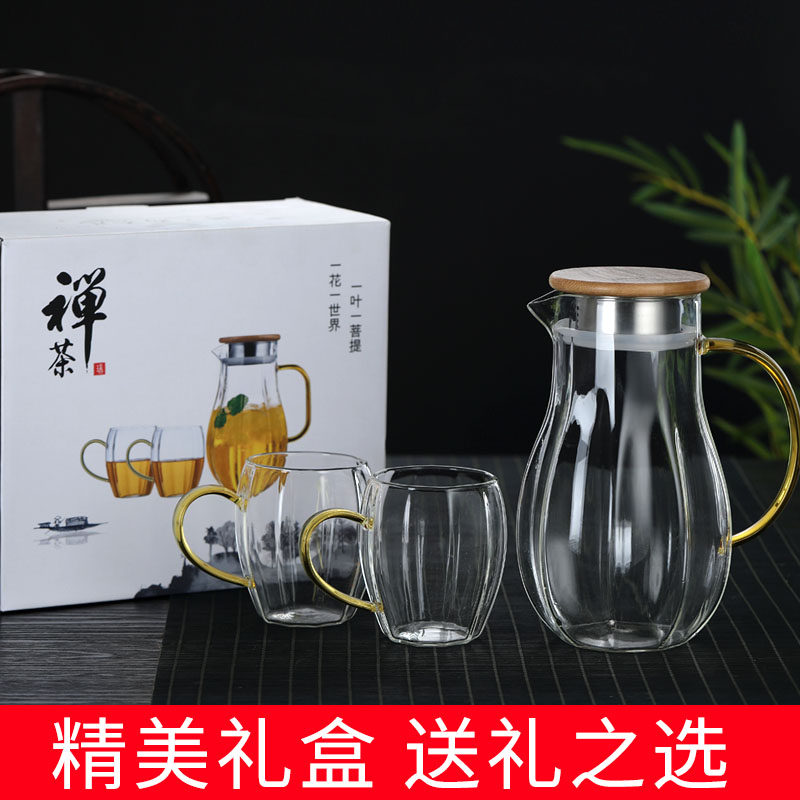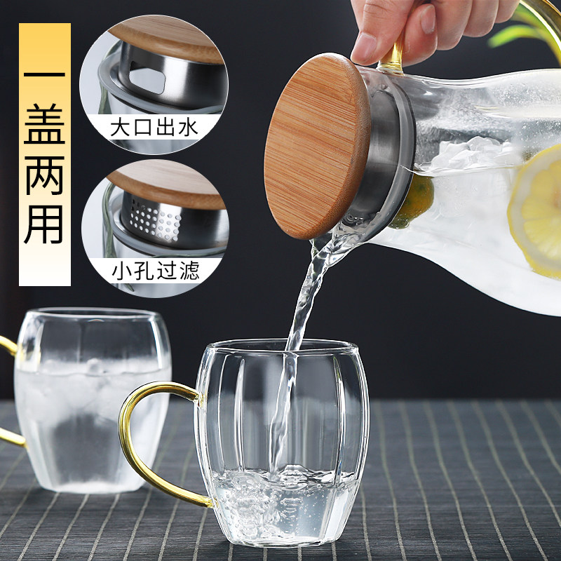 Glass cold water jug thickened high temperature resistant explosion protection cold water jug home large capacity cold water jug cool white open water cup suit